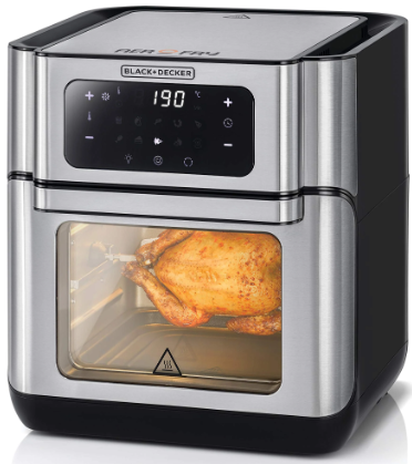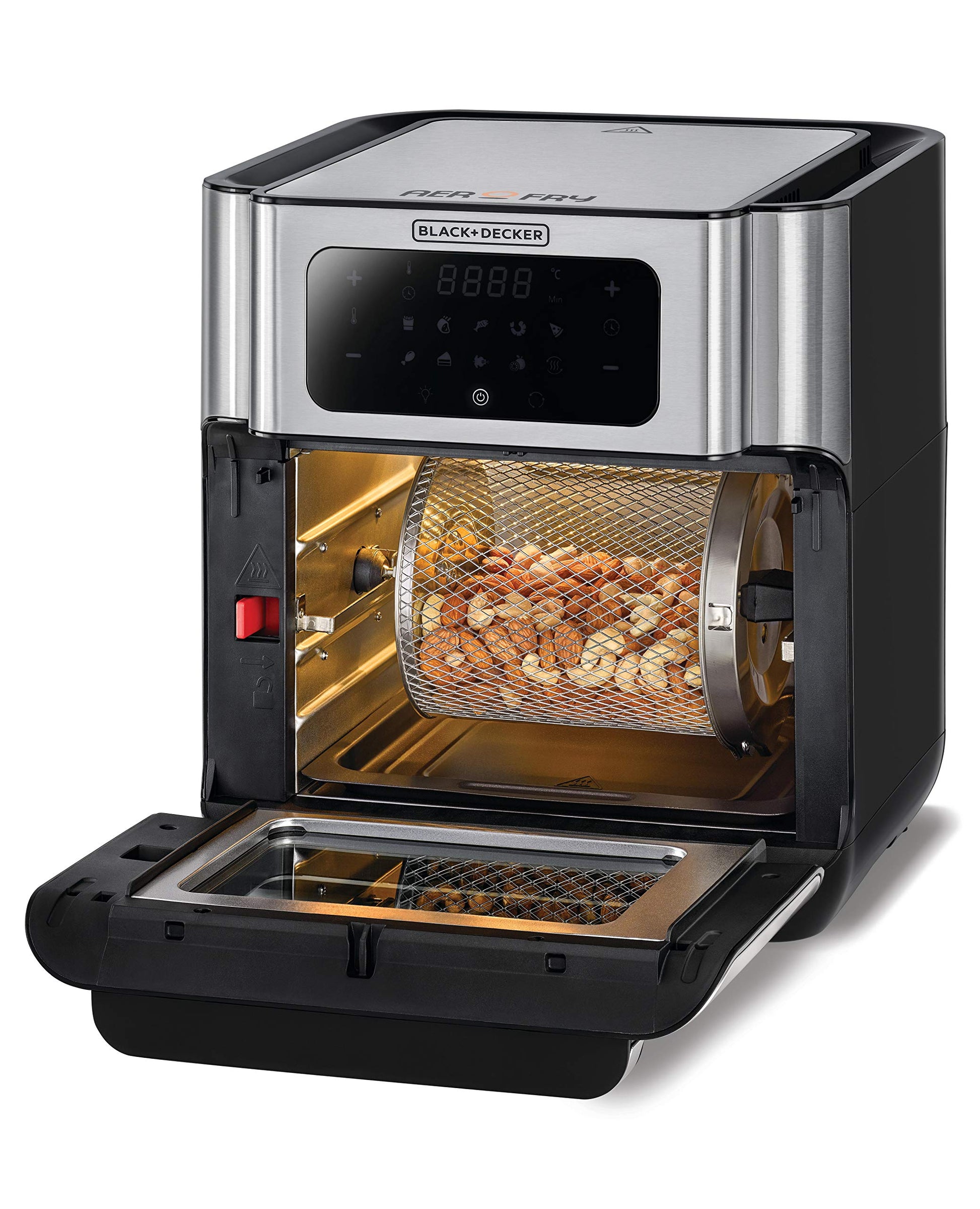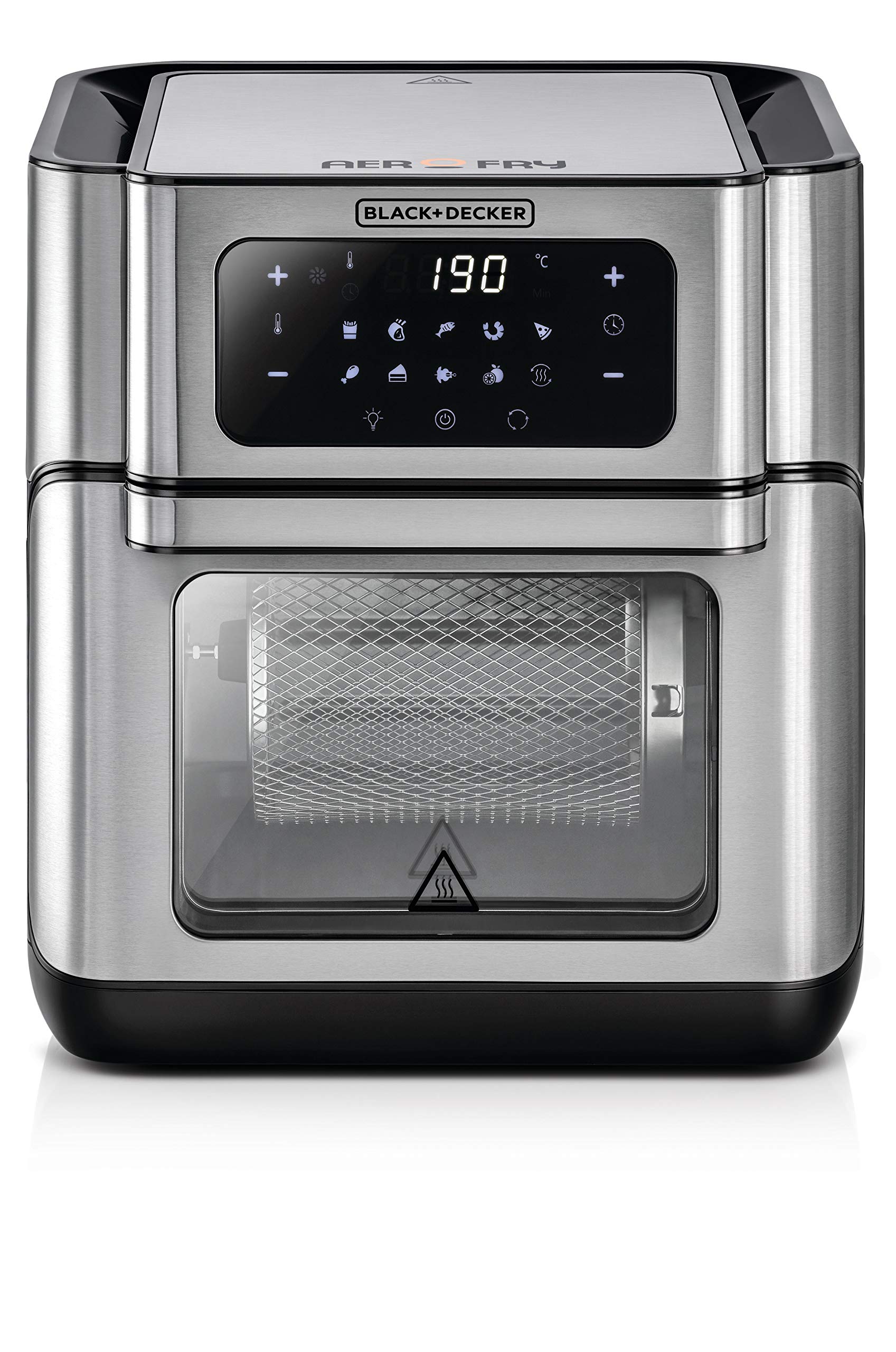 قلاية هوائية رقمية من بلاك اند ديكر بتحكم ديجيتال في درجة الحرارة، 10 برامج مضبوطة مسبقا سعة 12 لتر، فضي موديل Aof100-B5 (ضمان دولي) - جهد 220 فولت و50 هرتز، 1500.0 واط