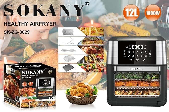 مقلاة هوائية ديجيتال بدون زيت، 1800 وات، 12 ليتر، اسود-فضي -من سوكاني SK-ZG-8029
