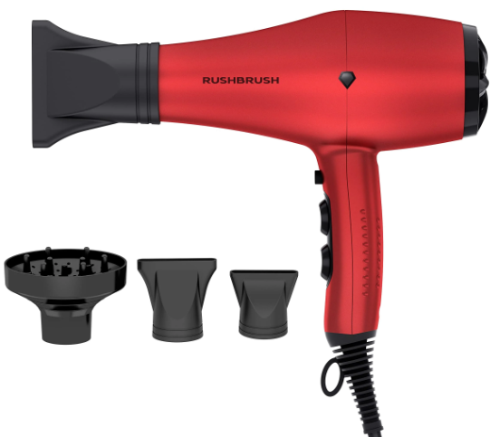 سيشوار D3K بمحرك تيار متردد 3000 واط من راش برش، بتقنية الايونات والكول شوت، احمر يتضمن موزع ومكثف ، 3000 واط