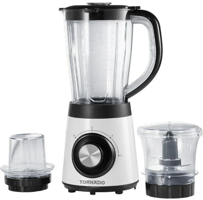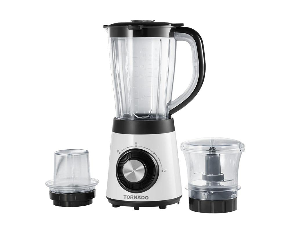 خلاط كهربائي بمطحنة ومفرمة من تورنيدو TBL-500W، ، 1.5 لتر، اسود وابيض، 600 واط