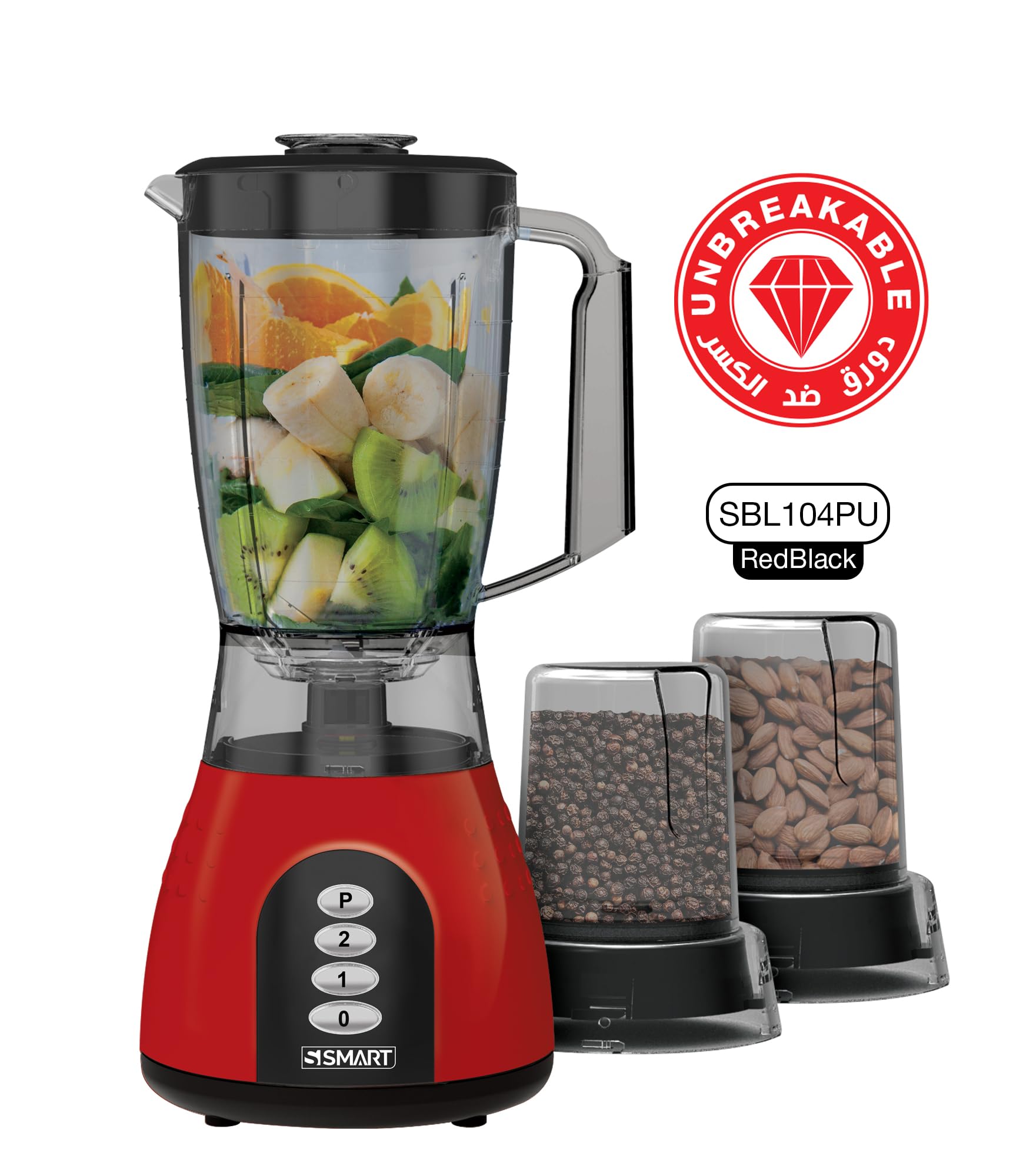 خلاط بيانو 500 واط غير قابل للكسر مع مطحنتين من سمارت، سعة 1.5 لتر، أحمر/أسود SBL104PU