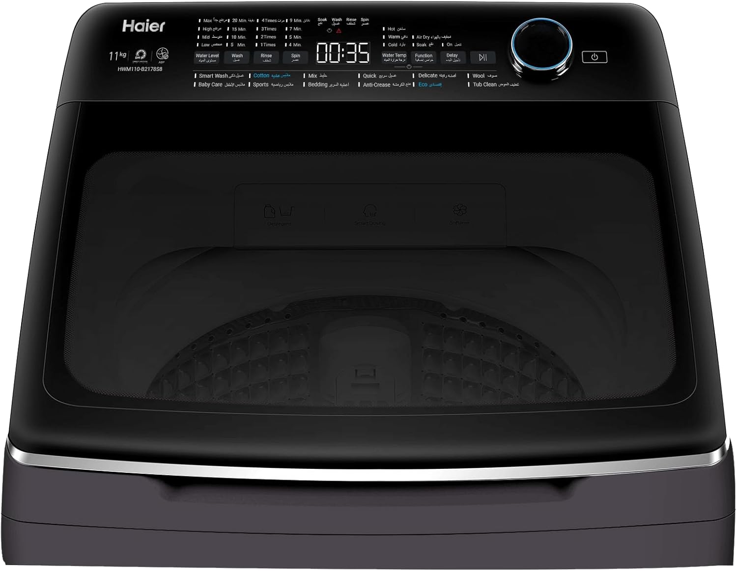 هاير 13 كجم تحميل علوي اوتوماتيك بالكامل، محرك عاكس بحركة مباشرة، تحكم خلفي، باب اغلاق ناعم، فضي داكن، HWM130-B2178S