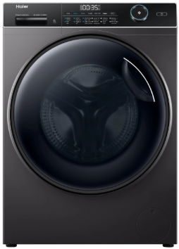 هاير غسالة تحميل امامي سعة 9 كجم تعمل بالواي فاي مع محرك عاكس حركة مباشرة 525 ملم سوبر درام بخار فضي غامق تعبئة أمامية HW90-B14959S8TU1