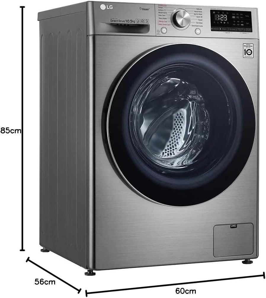 غسالة فيفاس بتحميل 10.5 كيلوجرام تعمل بتقنية الذكاء الاصطناعي دي من ال جي لون فضي تقنية ثين كيو ™ تعبئة أمامية F4V5RYP2T