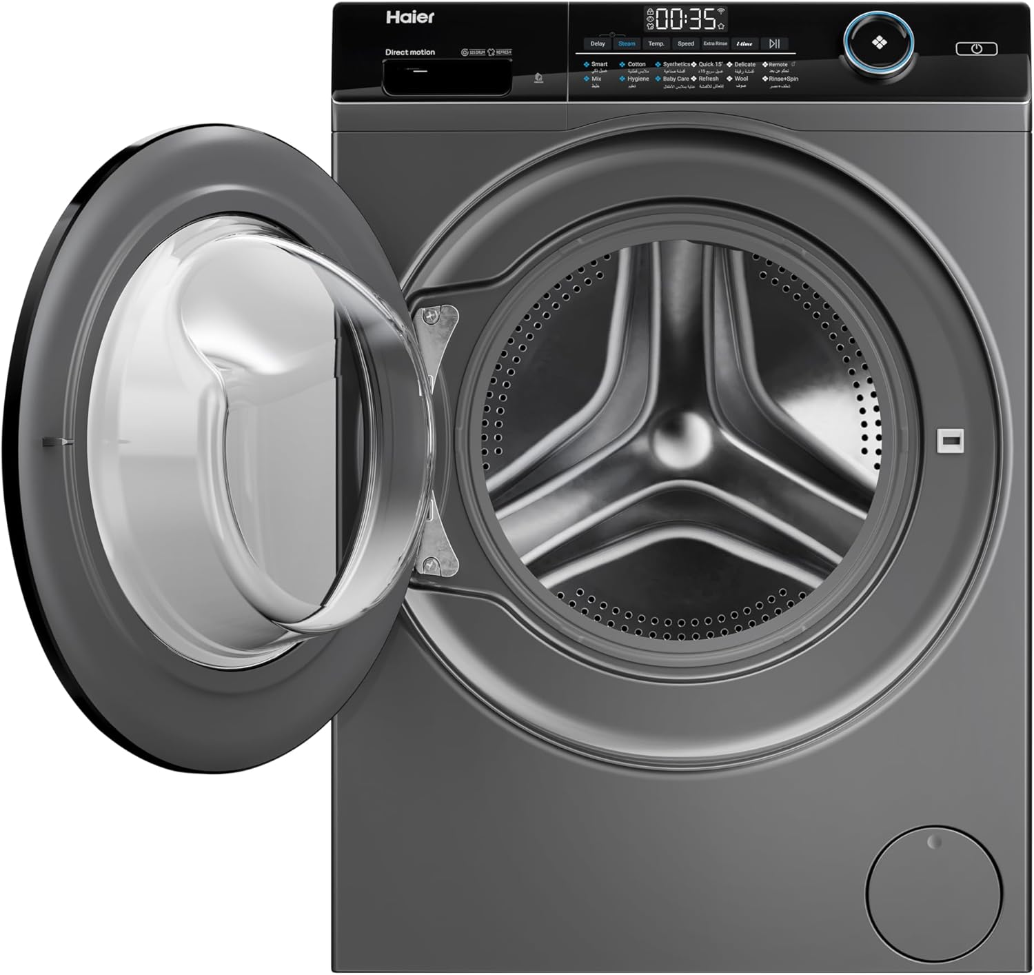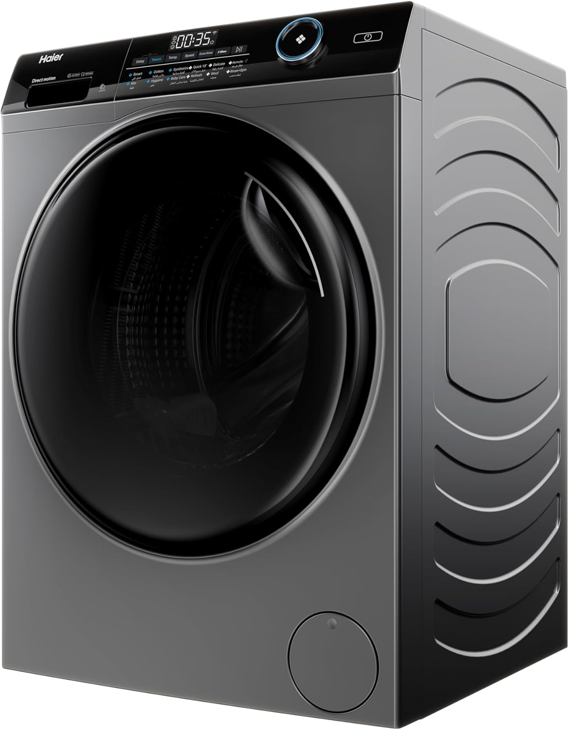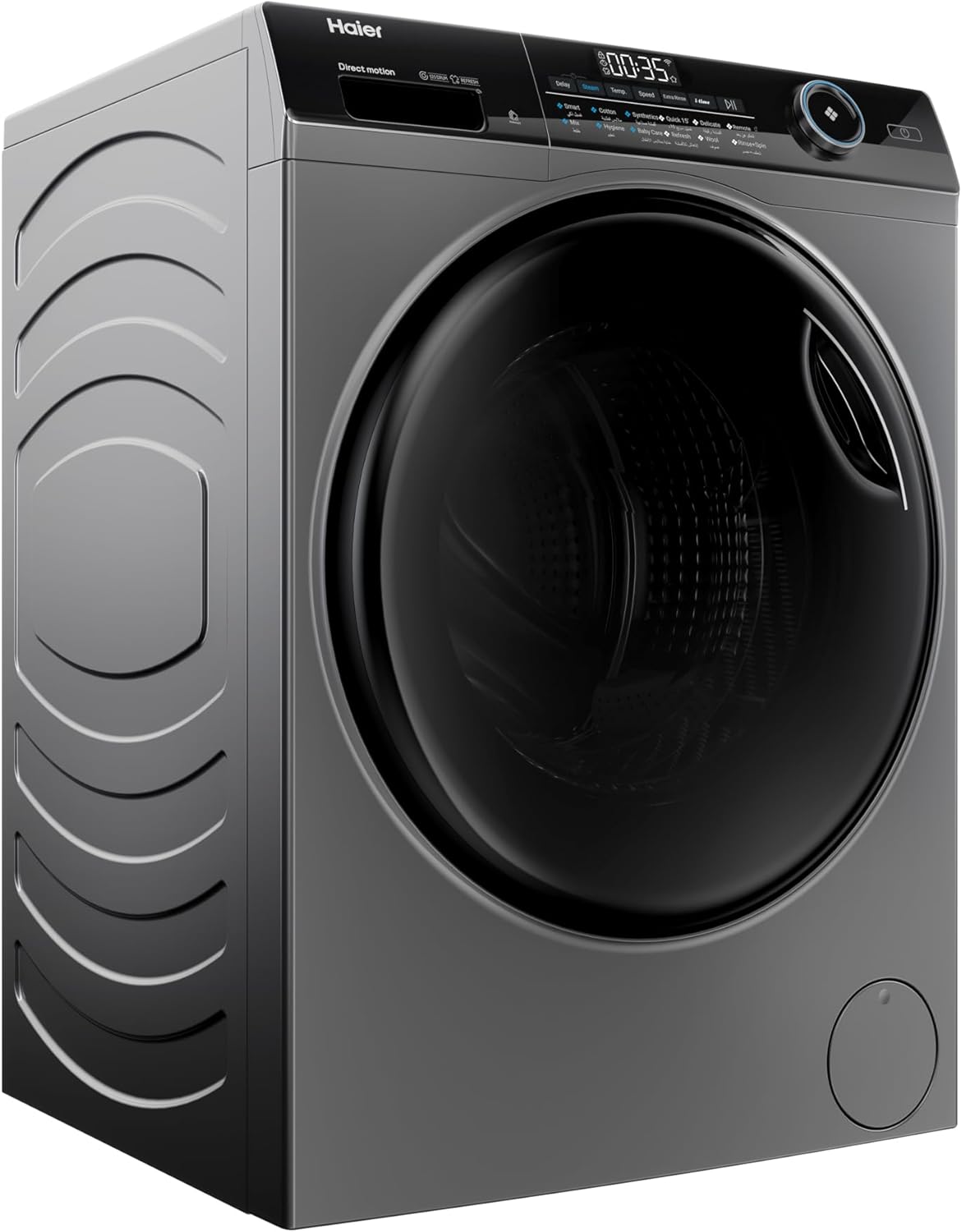 Haier Washing Machine,9 KG Front Loading 525 mm Super Drum, Direct Motion Inverter Motor, WiFi Haismart, Laser Welding, Steam, Silver, HW90-B14959S6TU1